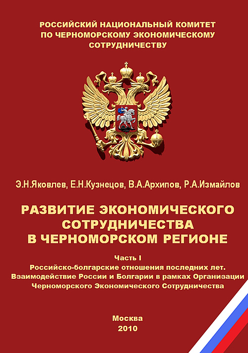 Год публикации: 2010 Яковлев Э. Н. Развитие экономического сотрудничества в Черноморском регионе. Часть 1. Российско-болгарские отношения последних лет. Взаимодействие России и Болгарии в рамках Организации Черноморского Экономического СотрудничестваНаучно-публицистическая монография [РНК ЧЭС] / Э. Н. Яковлев, Е. Н. Кузнецов, В. А. Архипов, Р. А. Измайлов; под общ. ред. д-ра экон. наук, проф. Э. Н. Яковлева. – М.: Государственное научное учреждение «Экспертно-аналитический центр», 2010. – 135 с. (ISBN 978-5-904670-03-0).