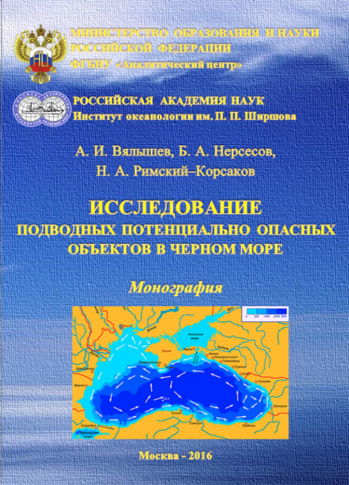 Год публикации: 2016 Вялышев А. И. Исследование подводных потенциально опасных объектов в Черном мореМонография / А. И. Вялышев, Б. А. Нерсесов, Н. А. Римский–Корсаков. – М.: ФГБНУ «Аналитический центр» Минобрнауки России, 2016. – 284 с. (ISBN 978-5-904670-38-2).
