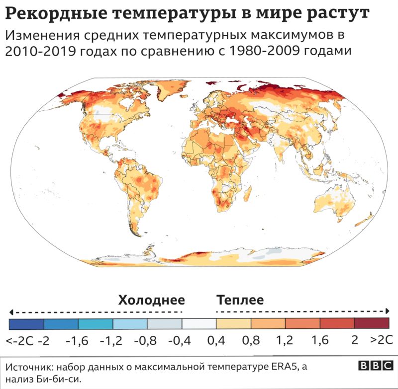 #США 16 сентября 2021 г. Количество чрезвычайно жарких дней удвоилось с 1980 годаСогласно глобальному анализу Би-би-си, количество чрезвычайно жарких дней в году, когда температура достигает 50°C, с 1980-х годов удвоилось.
