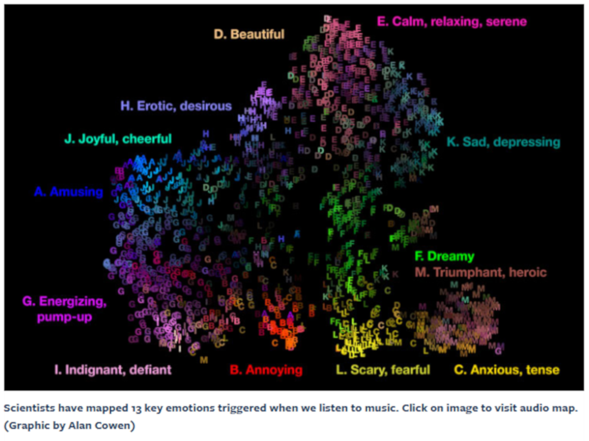 #США 22 января 2020 г. Ученые создали музыкальную карту эмоцийУченые определи количество эмоций, которые человек испытывает во время прослушивания музыки. «The Shape of You» Эда Гирана вызывает радость, а «Careless Whispers» Джорджа Майкла заставляет испытывать соблазнительную силу. Всего музыка вызывает, как минимум 13 эмоций.