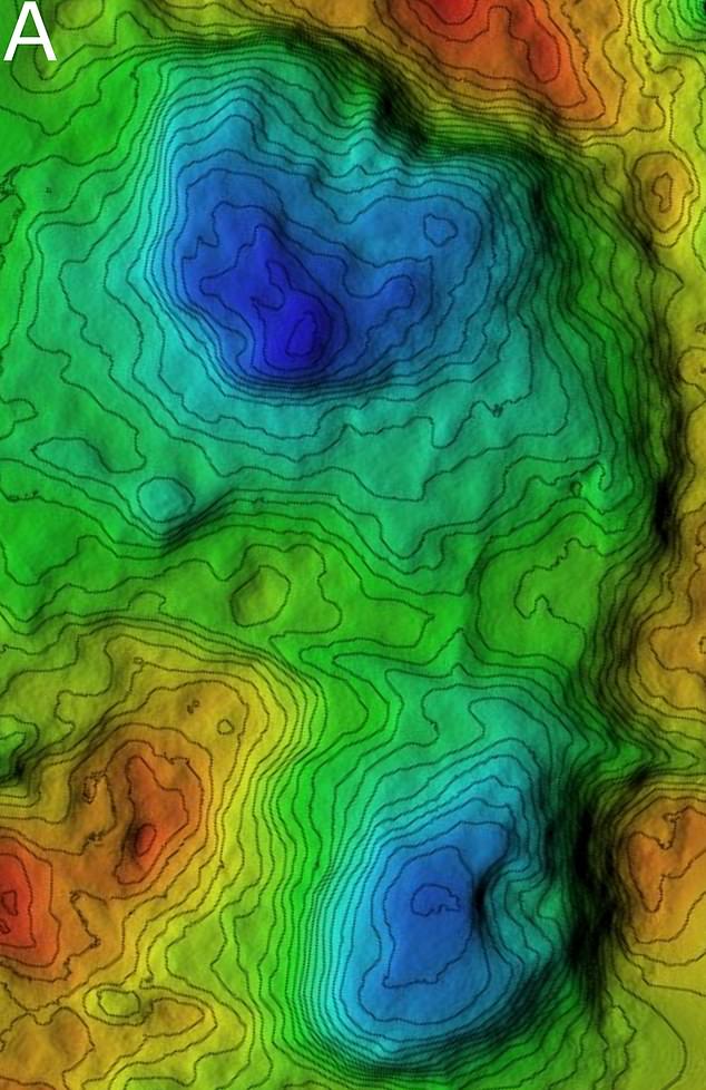 На этом изображении представлена цифровая модель рельефа (ЦМР) рекламного места, на котором виден характерный след человека.