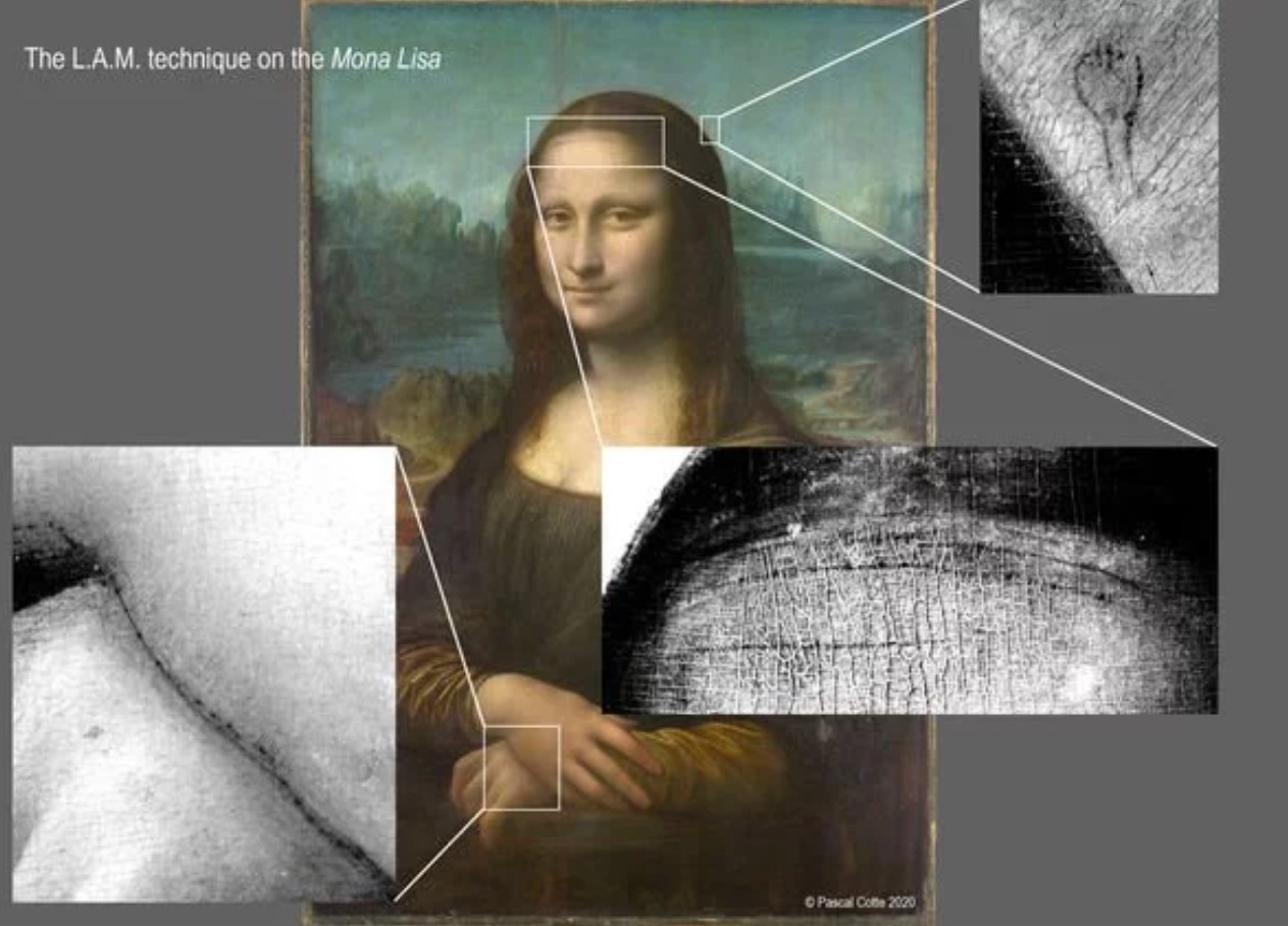 Французского инженера – оптика Паскаля Котта попросили оцифровать картину с помощью специальной камеры, которая смогла запечатлеть скрытые слои под портретом. В ходе мультиспектрального анализа он обнаружил ряд удивительных деталей, которые могут разрушить ранее существовавшие представления о картине.
