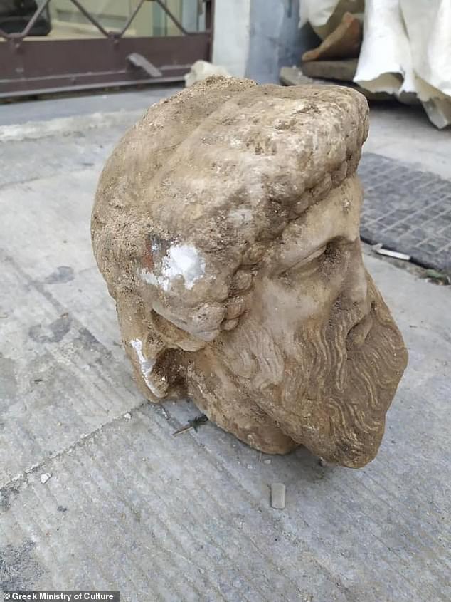Министерство культуры Греции заявило, что голова, найденная на глубине 4,2 фута (1,3 метра). По данным министерства, она датируется примерно 300 годом до нашей эры, либо концом четвертого века до н. э. или началом третьего века.