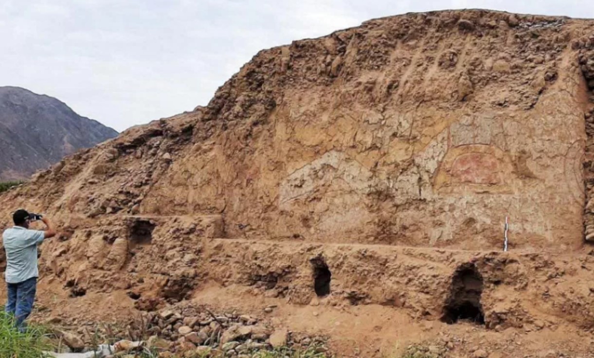 Фреска на сырцовом кирпиче размером 15х5, нанесена охрой, была найдена в провинции Виру в районе Ла Либертад в Перу в прошлом году, когда фермеры расширяли поля под плантации авокадо и сахарного тростника. Эксперты считают, что храм был построен доколумбовый период более 3000 лет назад. Археолог Регуло Франко Йордан (Régulo Franco Jordán) сказал, что стратегическое расположение святыни у реки заставило исследователей поверить в то, что это был храм, посвященный водным божествам.