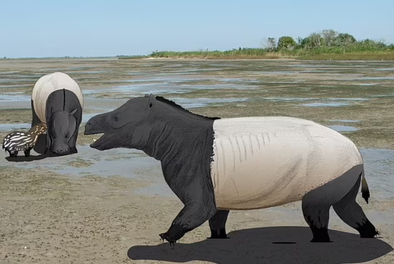 Реконструкция млекопитающих размером с бурого медведя (Coryphodon), оставившая тысячи следов в лагуне с солоноватой водой возрастом 58 миллионов лет на территории нынешнего южного Вайоминга. Изображение: источника.