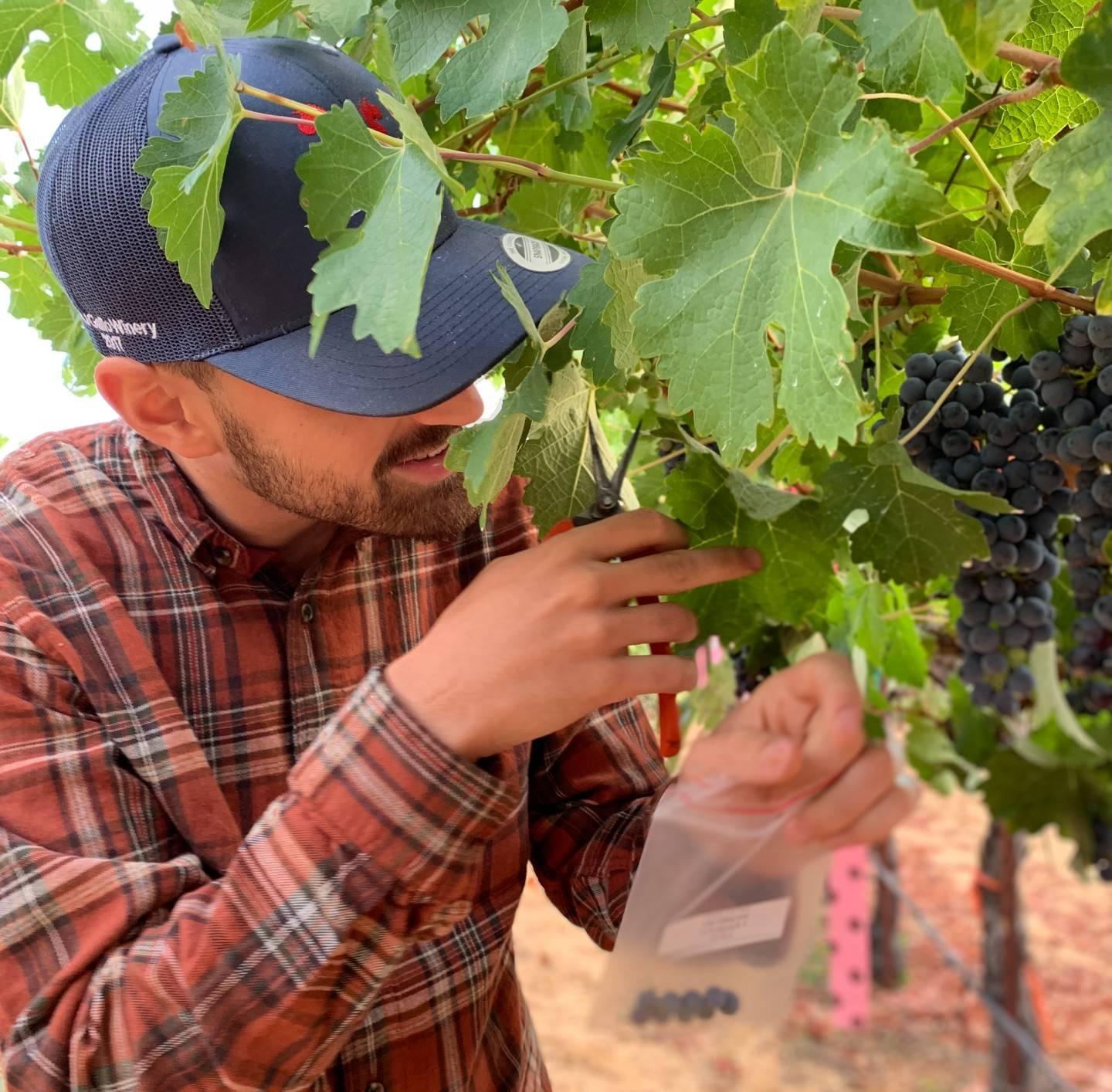 Исследователь Пьетро Превитали собирает образец винограда Каберне Совиньон для исследования. Фото: источника.