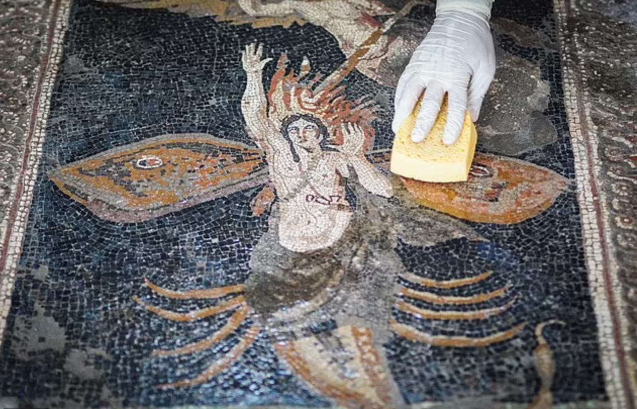 Археологи полагали, что в период своего расцвета термополий обслуживал бедных жителей древнего города, предлагая такие продукты, как утка, паэлья и улиток. «Мы знаем, что они ели в тот день», - сказал бывший руководитель археологического парка Помпеи Массимо Осанна (Massimo Osanna) еще в 2020 году. Кропотливые раскопки выявили многостороннюю сервировочную стойку с широкими отверстиями на ее верхней поверхности, в которых находились глубокие сосуды для горячих блюд, что очень похоже на то, что можно увидеть в современных буфетах и салат-барах. В одном контейнере археологи нашли фрагмент утиной кости, а в другом были останки различных животных, которых римляне ели, включая рыбу, коз, свиней и улиток. Исследователи также обнаружили девять амфор - высоких керамических кувшинов, используемых в древние времена для хранения еды и напитков, а также пару фляг, бронзовый ковш и керамический сосуд для масла. В одном кувшине были обнаружены следы измельченных бобов фава, которые римляне добавляли в вино, чтобы улучшить его вкус и осветлить его цвет. Покровителей термополия встречали яркие украшения, богато украшенные мозаичные полы и внутренние стены, окрашенные в желтый и оранжевый цвета с различными фресками, которые также украсили зигзагообразную сервировочную стойку. «Нарисованные изображения представляют, по крайней мере частично, продукты и напитки, которые продаются внутри», - объяснила штатный антрополог Помпеи Валерия Аморетти. Между тем, на другой фреске была изображена собака на поводке. Это было не единственное открытие в останках термополия, связанное с собаками, однако археологи также раскопали полный скелет взрослой собаки.
