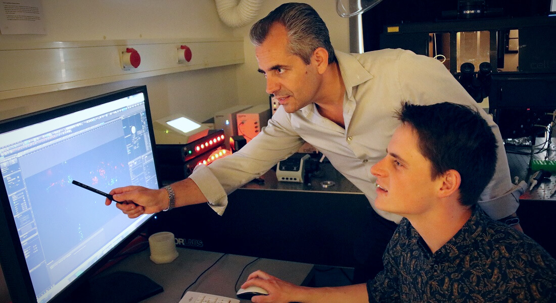 Никос Хатзакис и Хенрик Пинхольт в лаборатории (фото: Никос Хатзакис) «Наш алгоритм отслеживает движение белков и находит для каждого характеристики, которые позволят нам с большой точностью предсказать, является ли белок «хорошим или плохим»- работает ли он эффективно (или просто спит), собирается ли он вызывают рак или даже если наноносители могут доставлять лекарства в нужные места тела. Этот метод открывает возможность для лучшего контроля важных биологических процессов», - объясняет Никос Хацакис (Nikos Hatzakis), ведущий автор исследования и доцент химического факультета (UCPH’s Department of Chemistry). Исследователи называют этот метод «диффузным снятием отпечатков пальцев», поскольку он позволяет идентифицировать широкий круг людей, как и наши отпечатки пальцев. Исследование было опубликовано в PNAS (Proceedings of the Natural Academy of Sciences of the United States of America). Источник: news.ku.dk