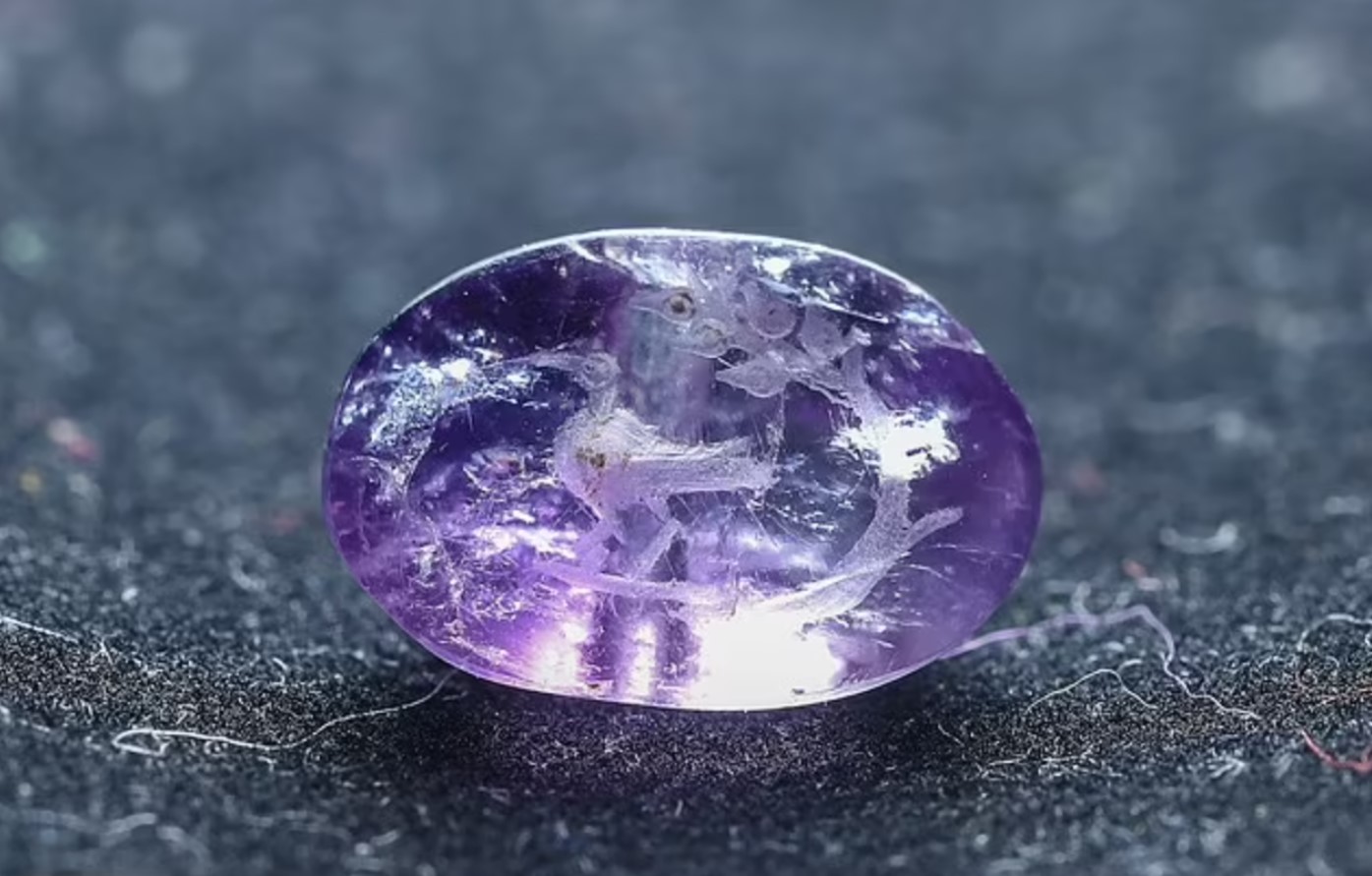 Изображение: источника. Когда-то аметист носили на кольце, на нем есть необычная гравировка с изображением птицы и ветки растения, приносящей пять плодов, по словам экспертов из Фонда города Давида (City of David Foundation), которые нашли его во время раскопок фундамента Западной стены (Western Wall foundations). Выгравированная на камне ветка была сделана из растения, которое использовалось для изготовления духов для храма, оно часто упоминается в Библии. Храм был разрушен около 70 г. н.э., эксперты предполагают, что это кольцо кто-то сбросил в дренажный канал за несколько десятилетий до этого. Печать птицы и бальзам - вот что отличает ее от других, поскольку она «не похожа на другие печати, использовавшиеся в то время» и «может быть первым обнаруженным в мире изображением с гравировкой знаменитого растения», говорится в сообщении исследователей.