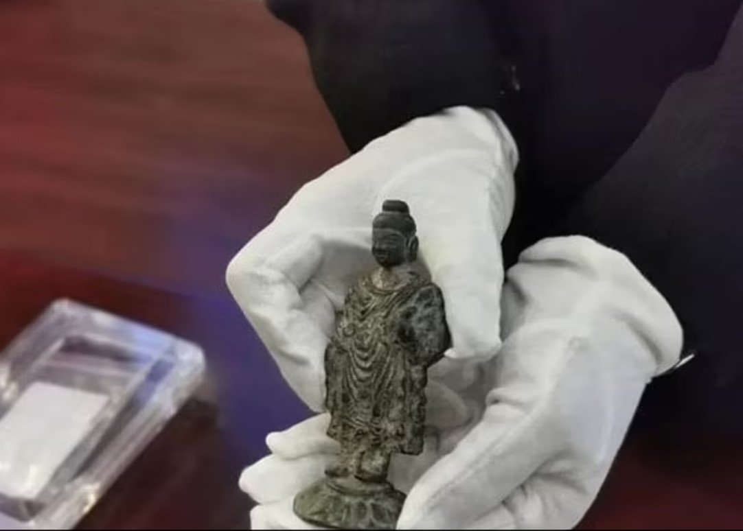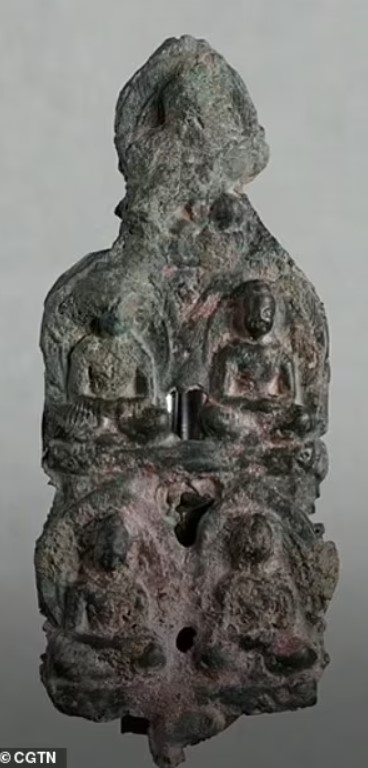 Статуи Будды были обнаружены археологами, работающими в северо-западной провинции Шэньси (Shaanxi Province), в центральном регионе Китая, где в 1970-х годах была обнаружена всемирно известная терракотовая армия солдатских скульптур в натуральную величину. В ходе раскопок, которые проводились с июня 2020 года по ноябрь 2021 года, было обнаружено 3648 древних гробниц, которые были построены с периода Сражающихся царств (475 г. до н.э. - 221 г. до н.э.) до династии Цин (1644-1911 гг. До н.э.), сообщает CGTN. По словам Ли Мина (Li Ming), руководителя археологического проекта из Академии Археологии Шэньси (Shaanxi Academy of Archaeology), место раскопок под названием кладбище Хонгдуюань на севере Чанъань, ныне известное как Сиань, как столица древних китайских династий Хань и Тан, было кладбищем правящей элиты. К настоящему времени обнаружено более 16 000 предметов (наборов) культурных реликвий, в том числе две статуи Будды. Фигурка Шакьямуни составляет 4 дюйма (10,15см) в высоту, а Пять Татхагат, которые лежат плоско, имеют размер 6 дюймов (15,24см) - обе сделаны из сплава меди, олова и свинца. Шакьямуни - это традиционное изображение Будды Шакьямуни, в котором он держит чашу в одной руке, а другой тянется к земле. Пять Татхагат изображают трансцендентных Будд, среди которых Акшобхья, Амитабха, Амогхасиддхи, Ратнасамбхава и Вайрочана. Источник: dailymail.co.uk