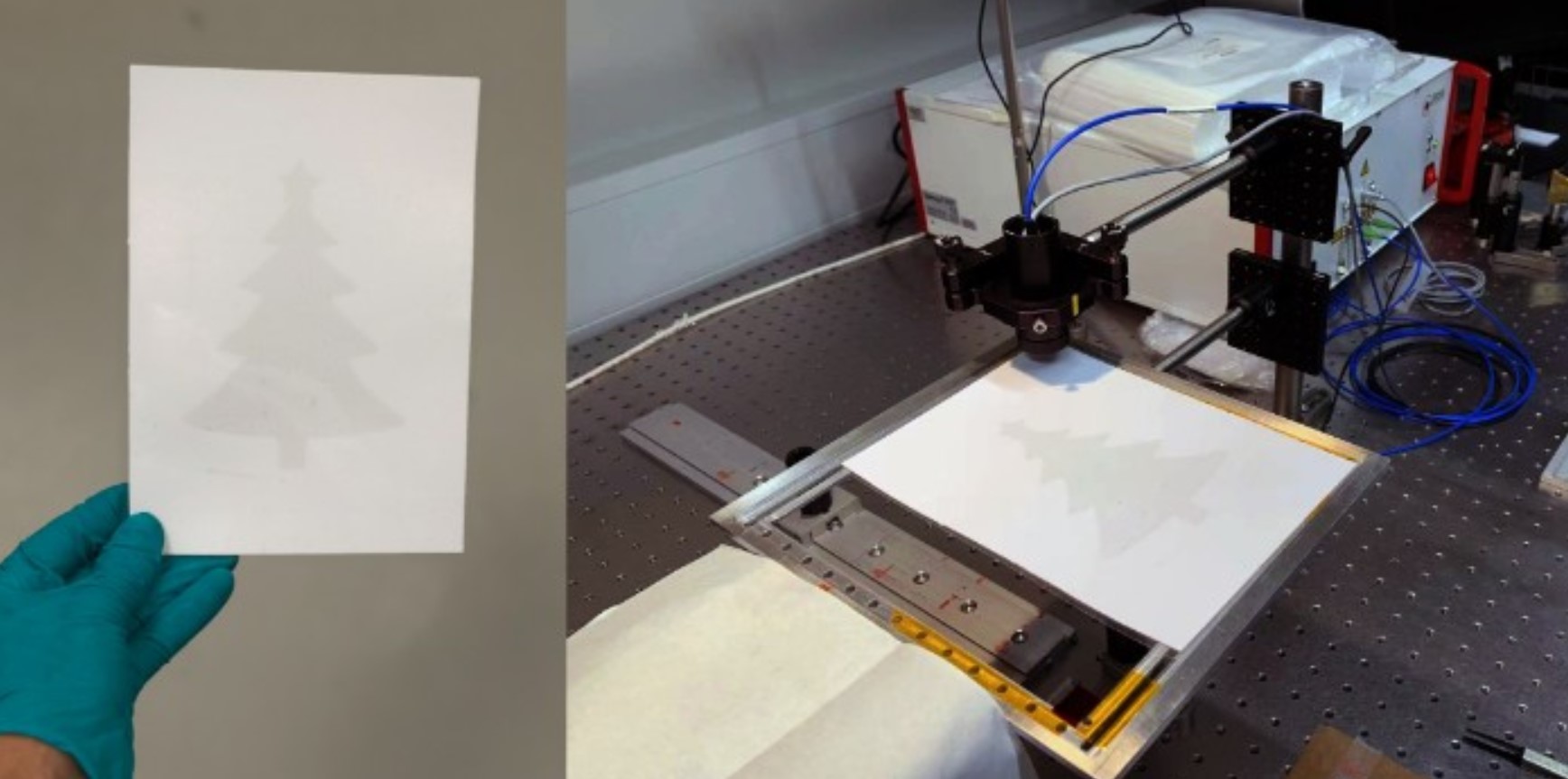 Изображение: источника. Елка на фотографиях выше - 14 сантиметров в длину. Поскольку она сделан из графена, она состоит только из атомов углерода в одном слое и имеет толщину всего лишь треть нанометра. Елка вырезается из рулона графена длиной 10 метров, переносится одним куском с помощью восстановленного ламинатора, а затем сканируется терагерцовым излучением. Эксперимент показывает, что непрерывный контроль качества может осуществляться во время производства графена, который, как ожидается, будет играть важную роль в будущей высокоскоростной электронике, то есть в медицинских инструментах и датчиках. Графен - это так называемый двумерный материал, то есть он состоит из атомов в одном связном слое толщиной всего в один атом. Он прочнее, жестче и лучше проводит электричество и тепло, чем любой другой известный нам материал. Следовательно, графен - очевидный кандидат на электронные схемы, которые занимают меньше места, меньше весят, гибки и более эффективны, чем электроника, которую мы знаем сегодня. «Даже если бы вы могли нарисовать карандашом рождественскую елку и снять ее с бумаги - что, образно говоря, именно мы и сделали, - она была бы намного толще одного атома. Бактерия, например, в 3000 раз толще, чем слой графена, который мы использовали. Вот почему я осмеливаюсь назвать эту елку самой тонкой в мире. И хотя отправной точкой является углерод, точно так же, как графит в карандаше, графен в то же время даже более проводящий, чем медь. «Рисунок» выполнен в виде одного идеального слоя из одного куска», - говорит профессор Питер Бёггильд (Peter Bøggild), возглавляющий команду ученых. «Но за рождественской шуткой скрывается важный прорыв. Впервые нам удалось провести поточный контроль качества графенового слоя при его переносе. Это ключ к достижению стабильных, воспроизводимых и пригодных к использованию свойств материала, что является предпосылкой для использования графена, например, в электронных схемах».