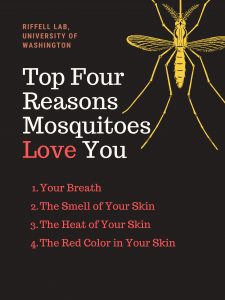 Команда ученых отслеживала поведение самок комаров желтой лихорадки Aedes aegypti, когда им предъявлялись различные типы визуальных и запаховых сигналов. Как и у всех видов комаров, только самки пьют кровь, а укусы A. aegypti могут передавать лихорадку денге, желтую лихорадку, чикунгунья и Зика. Исследователи отслеживали отдельных комаров в миниатюрных испытательных камерах, в которые они распыляли специфические запахи и представляли различные типы визуальных образов — например, цветную точку или вкусную человеческую руку.