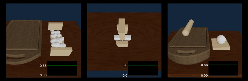 Изображение: источника. Теперь робот-пиццайол может работать с шариком теста, использовать лопаточку, раскатать его. Для робота работа с деформируемым объектом, таким как тесто, сложна, потому что форма теста может меняться разными способами, которые трудно представить с помощью уравнения. Исследователи из Массачусетского технологического института (MIT), Университета Карнеги-Меллона (Carnegie Mellon University) и Калифорнийского университета в Сан-Диего (University of California at San Diego), создали основу для роботизированной системы манипулирования, которая использует двухэтапный процесс обучения, позволяющий позволить роботу выполнять сложные задачи манипулирования тестом в течение длительного периода времени. Исследователи показывают, что этот метод, который они назвали DiffSkill, может выполнять сложные манипуляционные задачи в симуляциях, например, нарезать и намазывать тесто или собирать кусочки теста с разделочной доски, превосходя при этом другие методы машинного обучения.