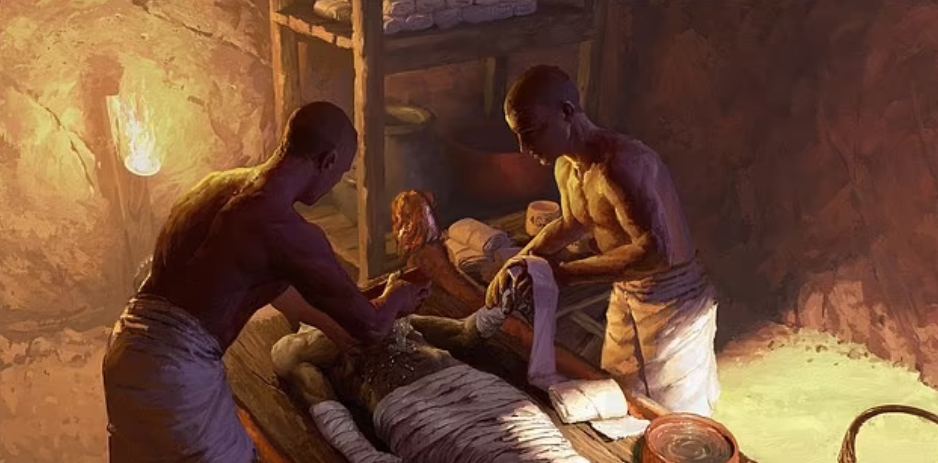Они также содержали названия бальзамирующих веществ и остатки самих веществ. Так исследователи, обнаружили три различных смеси, которые включали такие вещества, как смола элеми, смола фисташкового дерева, пчелиный воск и побочные продукты можжевельника, которые специально использовались для бальзамирования головы. Другие смеси использовались для мытья тела или смягчения кожи. Многие вещества для бальзамирования привозили издалека, например, продукты из фисташки и можжевельника, вероятно, были импортированы из Средиземноморья, а смолы элеми могли быть из тропических лесов Юго-Восточной Азии. «Бальзамировщик использовал некоторые вещества, которые могут быть важны как для противогрибковых, так и для антимикробных свойств. Они полезны, например, для сохранения человеческих тканей и уменьшения некоторых неприятных запахов. Такие материалы, как битум и пчелиный воск, также можно использовать для закрытия пор кожи и уменьшения влажности», - сказал один из авторов исследования Максим Рагеот (Maxime Rageot) из Тюбингенского университета в Германии (University of Tubingen). Первая часть процесса бальзамирования, занимала 70 дней и включала удаление внутренних органов человека, за исключением сердца. Далее тело нужно было покрыть солью, называемой «натрон», чтобы высушить его, прежде чем смазать его внутри и снаружи, чтобы сохранить кожу. Весь процесс должен был помочь «превратить» человека из земного в божественное существо и подготовить его к загробной жизни. Профессор Филипп Стокхаммер (Philipp Stockhammer), который также работал над исследованием, сказал, что одним из их самых удивительных открытий было то, что тропические смолы были доставлены в Юго-Восточную Азию. «Бальзамирование было одним из первых двигателей глобализации, потому что это означает, что вам нужно было транспортировать эти смолы на большие расстояния — из Юго-Восточной Азии в Египет. Это также показывает, что люди, работающие в этих мастерских — эти специалисты — знали, какие вещества они используют», — сказал он. Источник: dailymail.co.uk