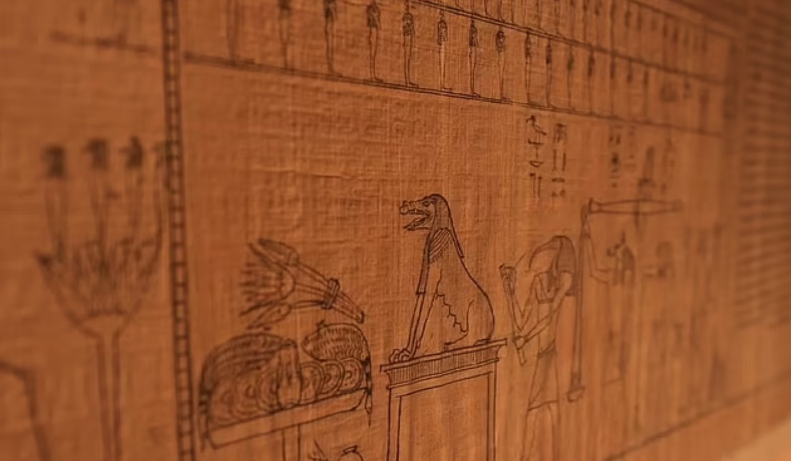 Осирис был не только правителем мертвых, но и силой, которая даровала все живое из подземного мира, от прорастания растительности до ежегодного разлива реки Нил. На свитке есть изображения животных, которые по мнению экспертов символизируют подношения, а некоторые лодки, вероятно, используются в качестве судов для подземного мира. Иллюстрация пары, почитающей божеств древнего Египта, также видна на свитке, который мог быть Яхмосом и его неизвестной женой.