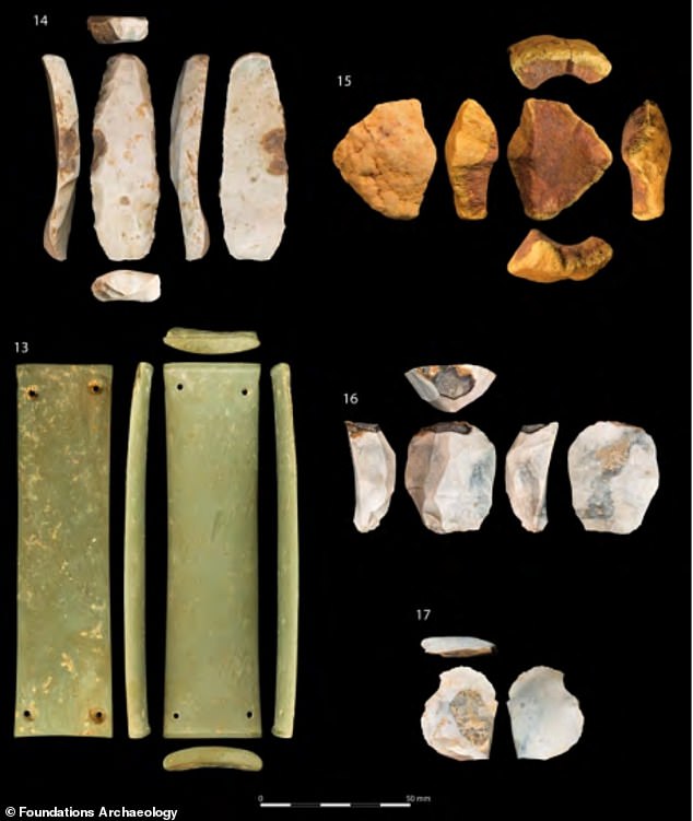 Это медный кинжал, лук из китового уса, запястье лучника из полированного зеленого камня из Озерного края и набор для разжигания огня. Ученым не удалось пока понять, сколько лет было вождю, но говорят, что шаману, сидящему напротив него, было за пятьдесят или 60 лет. Именно сидячая позиция заставила экспертов поверить в то, что он был жертвой, поскольку раннее были найдены шаманы, похороненные вместе с вождями в аналогичных позициях в Европе и Азии. Его нашли в вертикальном положении, ноги свисали над ямой, а лицом он был обращен к вождю. «С точки зрения антропологии, идея иметь шамана или святого человека вполне вписывалась бы в этот контекст, потому что это была церемониальная и религиозная часть значительной части доисторической эпохи», - сказал господин Худ.