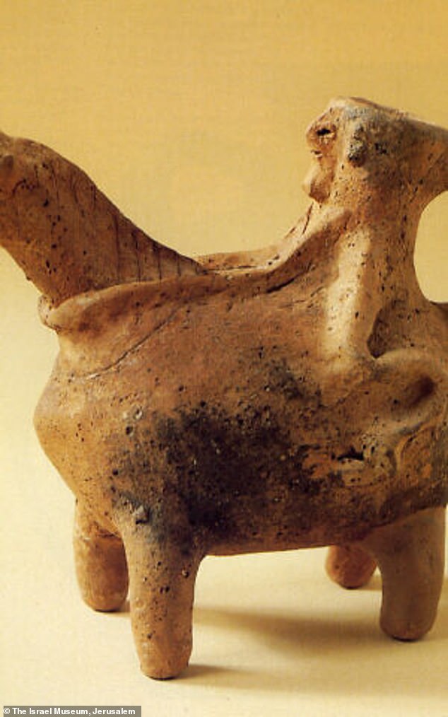 Аввакум 3: 8 гласит: «Разгневался ли ты на реки, Господи? Был ли твой гнев против потоков? Разве ты гневался на море, когда ехал на своих лошадях и колесницах к победе?» Второй пример, который он нашел, был показан в Псалме 68: 4, где говорится: "Пойте Богу, воспевайте имя его; вознесите Песнь тому, кто ездит на облаках». «Некоторые библейские традиции описывают Яхве как наездника на небе или облаках, точно так же, как в Угарите. Но некоторые тексты представляют новое развитие событий, в которых он едет на лошади », - говорит профессор Гарфинкель. Другие глиняные головы, найденные в Тель-Моце, были извлечены из храма недалеко от Иерусалима, и из-за библейского, запрета таких изображений, команда предполагает, что эта область использовалась для поклонения множеству различных богов, а не только Яхве.