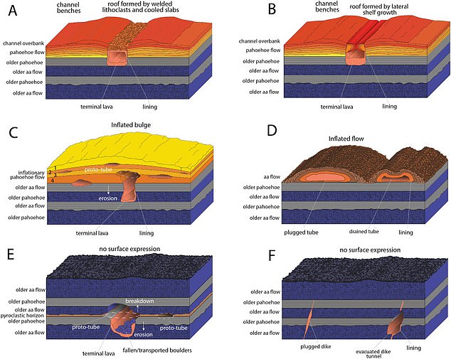 Эти полости могут защищать от космического излучения, по мнению ученых. Небесные тела содержат лавовые трубы/туннели, которые в 1000 раз больше, чем на Земле. Подобные трубки/туннели (полости в лавовых потоках, вытянутые в виде коридоров) найденные на Земле, были измерены командой и использованы для оценки размера тех, которые, как считается, существуют под поверхностью других планет. По словам исследователей, самые большие из труб находятся на Луне: они достигают 100 футов (30,48м) в ширину и более 25 миль (40 233 м) в длину, что достаточно для базы размером с небольшой город. Франческо Сауро (Francesco Sauro) из Европейского космического агентства (European Space Agenc) и Риккардо Поццобон (Riccardo Pozzobon), геолог из Университета Падуи (University of Padua), оценили их масштаб. «Мы можем найти лавовые трубы на планете Земля, но также и в недрах Луны и Марса, согласно фотографиям с высоким разрешением, сделанным межпланетными зондами», - сказал Сауро. «Свидетельства наличия лавовых трубок часто предполагали путем наблюдения за линейными полостями и извилистыми цепями обрушения в местах, где образовались трещины». Эти лавовые трубки появляются на поверхности Луны и Марса, как на Земле, особенно на Гавайях, Канарских островах и в Австралии.